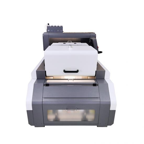 A3-DTF-Drucker mit Shaker-Pulvermaschine in einem, geeignet für A3 / A4 direkt zum Filmdruck. Mit doppeltem I3200-Kopfdruck, 9 Quadratmeter Hochgeschwindigkeit.