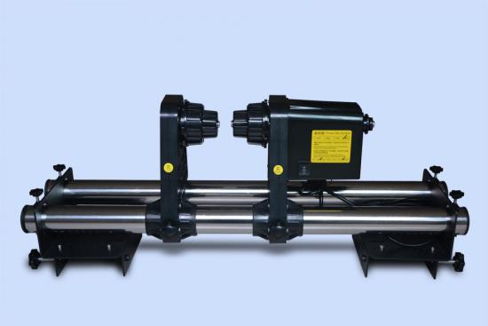 Das Medienaufnahmesystem lässt sich einfach an den Füßen eines Druckers befestigen. Auf jeden Drucker anwendbar. 1 oder 2 Motoren optional.